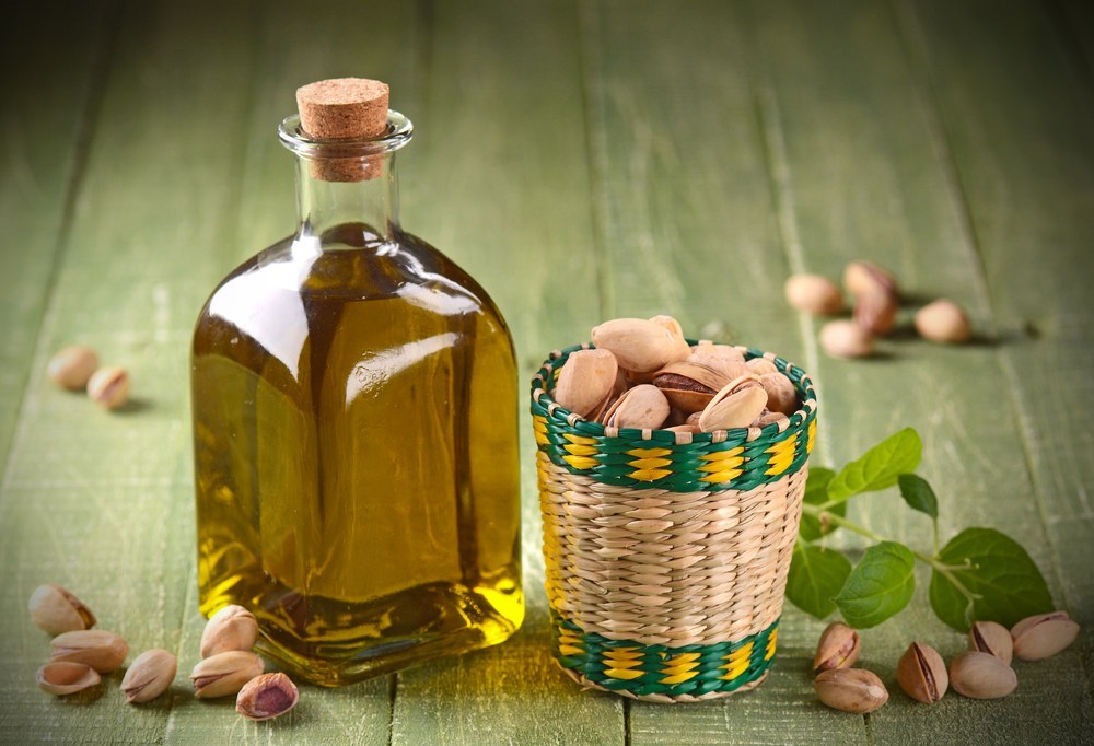 Pistachio oil, strongly flavored oil, particularly for use in salads.